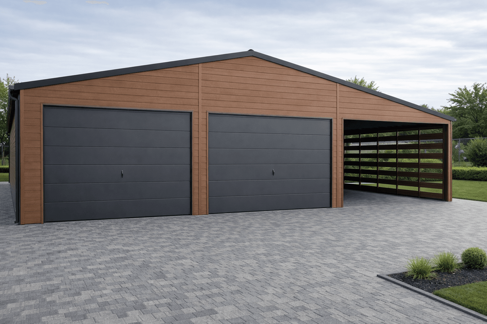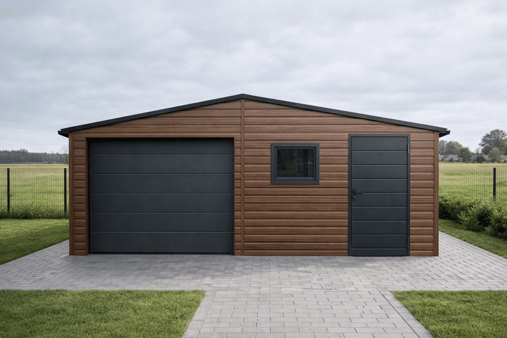 Garaże w kolorze drewna to połączenie naturalnego wyglądu z trwałością stalowej konstrukcji. Idealnie wpisują się w nowoczesną i klasyczną zabudowę, oferując estetykę drewna bez konieczności jego konserwacji. To rozwiązanie dla osób, które chcą, aby garaż był nie tylko funkcjonalny, ale również dobrze komponował się z otoczeniem posesji.